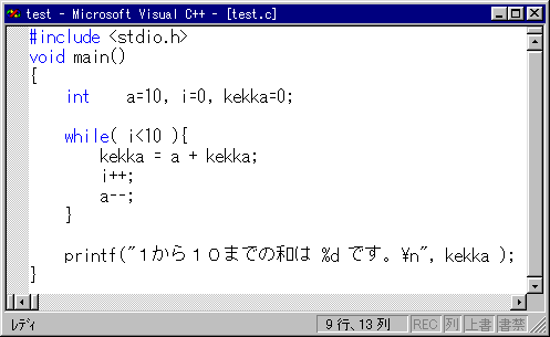 それに対してwhile文は括弧の中には終了条件だけを書きます。