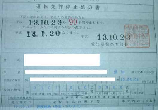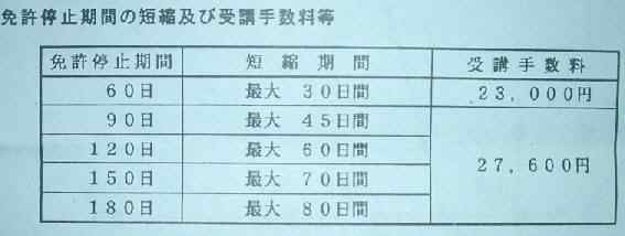 そこに腰掛けて、代わりに貰った1枚の紙を見てみると、 講習の案内[中・長期用]と書かれていた。 この時点で、免取はないのと、免停期間が30日でもないことを悟った。 そこにはこんな表が載っていた。