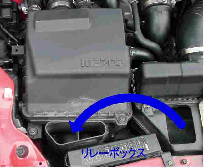 リレーボックスが見えるが、これをどかすことができれば、 アルミホースを増設してふたを通らずに吸気ができそうである。エアクリボックスのはずし方 エアクリに穴を開けるためにエアクリボックスをはずします。