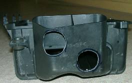 エアクリボックスに穴を開ける アルミホースを通す穴を開けます。 私のアルミホースの直径は、38mmでしたが、できればもう少し小さい方が良いかもしれません。
