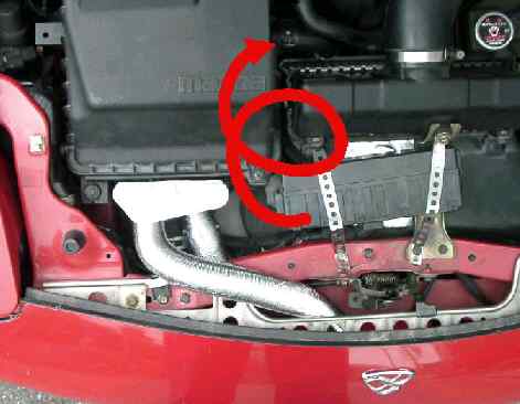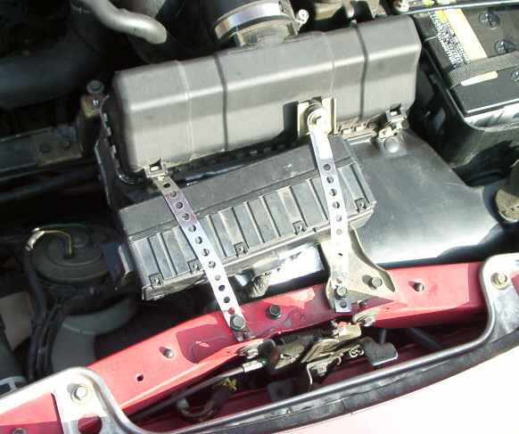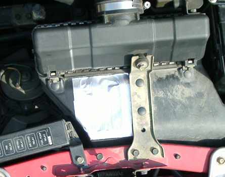 まじでめちゃくちゃ熱いです。手をかざしたらやけどするぐらいです。 試しに、ノーマルエアクリの人は、ふたを取ってファンを回してみましょう(エアコン付ければ回ります)。今まではこのふたのせいで、ラジエタの熱を奪った空気は十分な逃げ場がなかったので、 エンジンルームの空気の循環が非常に悪かったものと思われます。 ですが、前回のボンネット穴あけ加工と、この空気循環改善(あくまで副産物だが)により、 冷却効率は非常に高まったと思います。