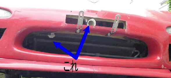 ダクトの装着 私はこのように一本は上(ナンバー裏)から、 もう一本は下(バンパー開口部)から(バンパー汚いねぇ〜)吸気するようにしました。 元々の吸気通路はインタークーラーの時と同様にアルミテープで塞ぎました。
