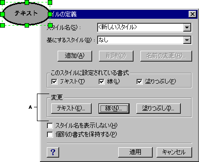 スタイルを定義する際、テキスト、線、塗りつぶしの設定を個別に修正できます (A)。