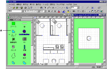 図面ステンシル (A) のマスタシェイプのコピーを編集することによって、図面ページにあるそのマスタシェイプのインスタンスがすべて編集されます。