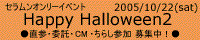 成人指定作品無しアンコールに応えて再び復活! 06年10月21日に、Happy Halloween3が開催決定!! コスプレOK 朝霧誠さん主催のせらむんオンリーイベントです。第4回目は、2006年の2月5日です。当然、参加します。リンク先は「4」に変更しています。 コスプレOK 創作系サイトの検索エンジンです。登録をしました。 サイト検索