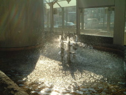 右の写真は、左の写真とは別の噴水です。こちらの方が、勢いがありますね。